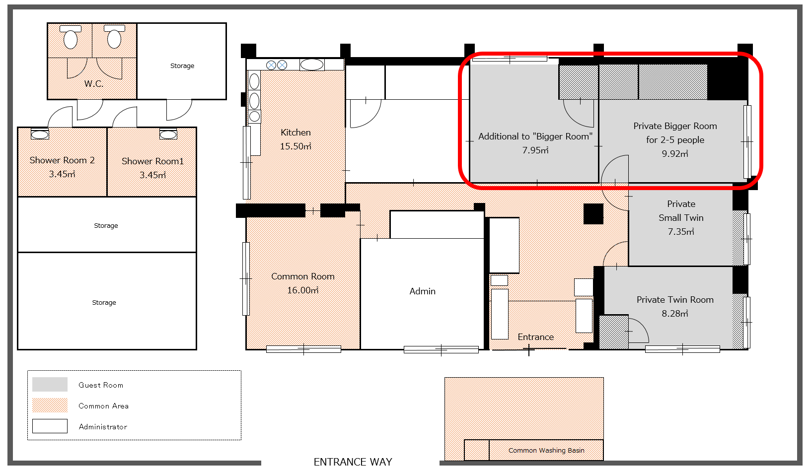 Space: 9.92㎡ (17.87㎡ with additional room)